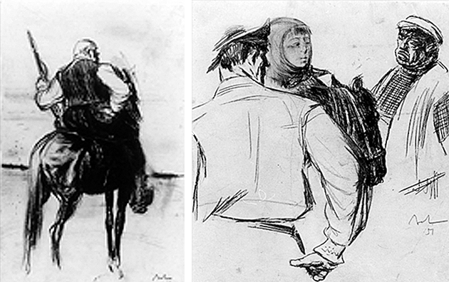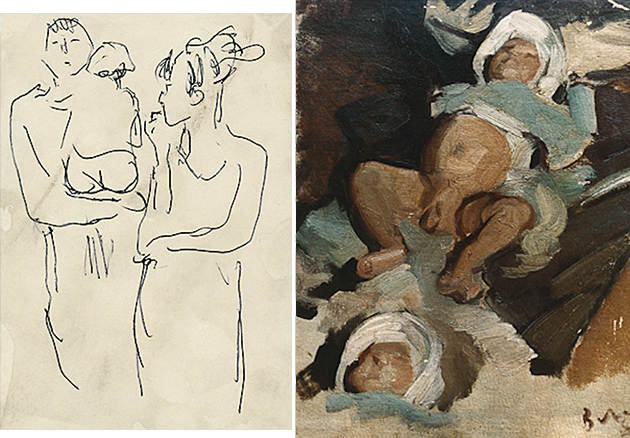 marile teme ale creației: portretul, țăranii; primele călătorii peste hotare, primele vizite în mari muzee