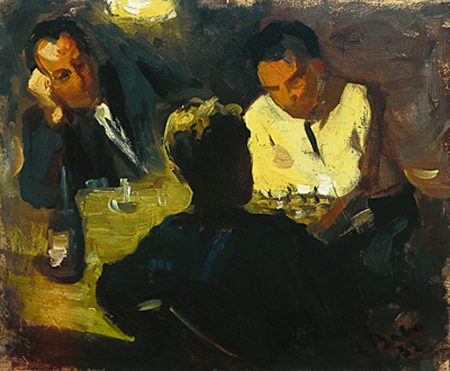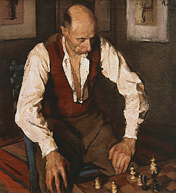 „În atelierul din Iași refăcut din ruine am reușit să acopăr o pânză veche pictată cu «Jucătorul de șah», lucrare apărută ca o gratuitate anacronică și sfidătoare prin indiferența ce o manifesta «thematic» la preocupările sociale ale momentului.”