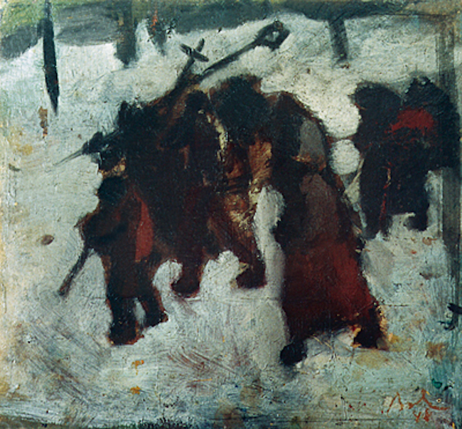 Ulei pe pânză, 15 × 20 cm, semnat, datat dr. jos cu roșu