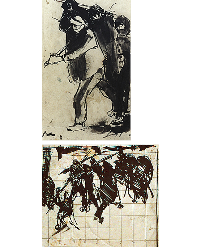 „Ieri dimineață mi-a apărut ciudat viziunea «Înmormântării sărace». De doi ani schițez întruna tema aceasta fără să pot realiza ceva mulțumitor. Ieri dimineată, în fața ochilor deschiși în semiîntuneric mi-a apărut de-o dată grupul celor cinci oameni în drum spre cimitir. Datorită cărui miracol grupul era alcătuit atât de pictural? Tot ceea ce căutam a apărut într-o singură clipă. (1945)”