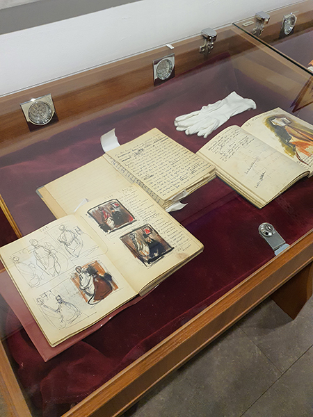 Am adus în expoziție câteva lucruri inedite din atelierul său. A primit la o vreme un cadou original: un manechin din lemn cu articulații. Amuzat, a început să îl acopere cu bucăți de materiale, la început hârtie, apoi pânză pe care o și colora cu uleiuri. În final, joaca a ajuns atât de preocupantă că a cerut să fie confecționate chiar haine, ca cele pentru Arlechin, Cavaler, Călugăr, Enescu, dar și capete de expresie. Se juca folosind lumina, impostarea în mișcare. Fac parte din lumea atelierului și am folosit această ocazie pentru a le vedea și dvs.