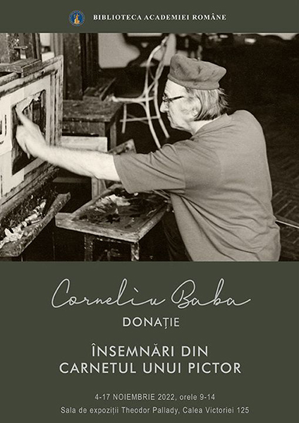 Mai puțin atrași de stilul confesiv sau de notația cotidiană s-au dovedit a fi la noi artiștii, fie ei pictori sau muzicieni. Dispunem până acum de un foarte interesant jurnal lăsat de Theodor Pallady, de jurnalul lui George Tomaziu și de Jurnalul lui Mihai Sârbulescu. Lor li se alătură acum un artist foarte discret, Corneliu Baba, despre a cărui preocupare de a reflecta asupra actualității și a propriei creații s-a aflat destul de târziu. Volumul lansat în spațiul oferit de Muzeul Național de Artă al României este definitoriu pentru temele creației pictorului, teme pe care vă invit să le vizualizați în zilele ce urmează. Expoziția este deschisă până la 28 februarie 2019.”
