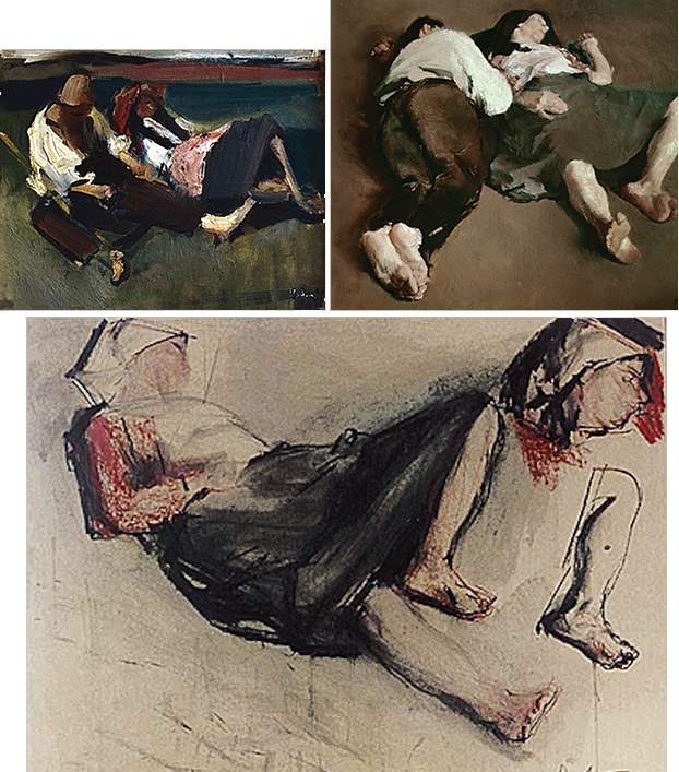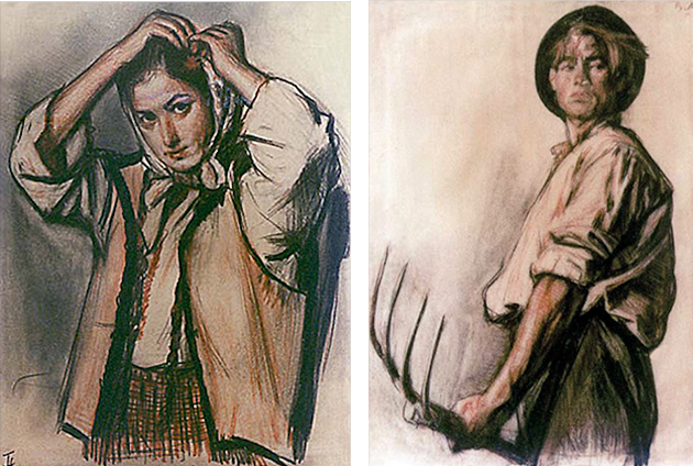 marile teme ale creației: portretul, țăranii; primele călătorii peste hotare, primele vizite în mari muzee