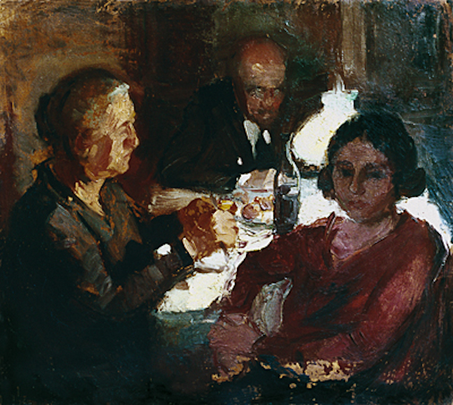„Din anii aceia au rămas cîteva lucrări ce mă reprezintă, cel de atunci. Lucrarea «Cina» nu-i lipsită de oarecare teatralism care va dispare mai târziu. Portretul rămîne și aici elementul pregnant ca de altfel în cele mai multe din lucrările mele.”