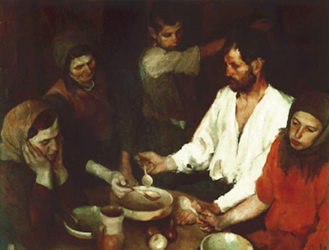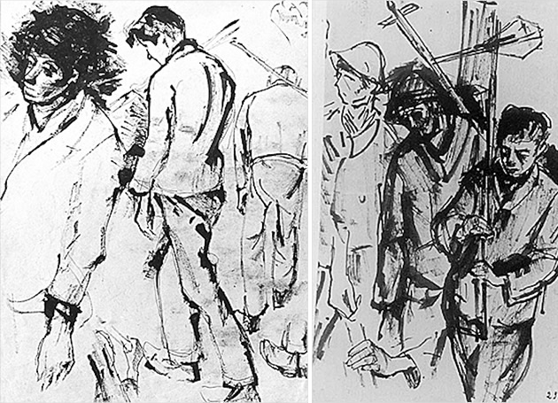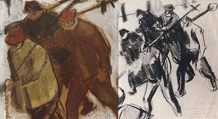 „Ieri dimineață mi-a apărut ciudat viziunea «Înmormântării sărace». De doi ani schițez întruna tema aceasta fără să pot realiza ceva mulțumitor. Ieri dimineată, în fața ochilor deschiși în semiîntuneric mi-a apărut de-o dată grupul celor cinci oameni în drum spre cimitir. Datorită cărui miracol grupul era alcătuit atât de pictural? Tot ceea ce căutam a apărut într-o singură clipă. (1945)”