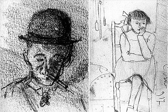„În consecință, înainte de a fi împlinit șase ani, m-am văzut instalat la un șevalet propriu la care desenam zilnic folosind figuri de gips, învățând după metode clasice să observ și să proporționez, să valorez și în plus «să colorez» în alb și negru cu o bucată de cărbune.”