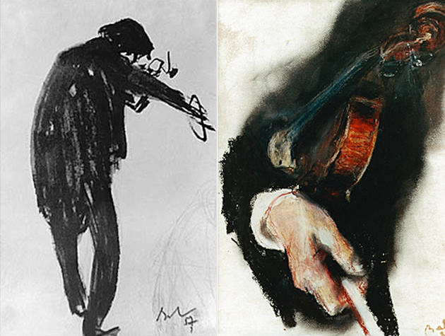 „Intuiția mea de pictor, pe care o posedam se pare de-atunci, mi-a oprit privirea în primele momente asupra contrastului de culoare și de dimensiune între statura masivă înveșmîntată în fracul negru și sclipirea fascinantă a viorii…”