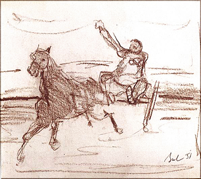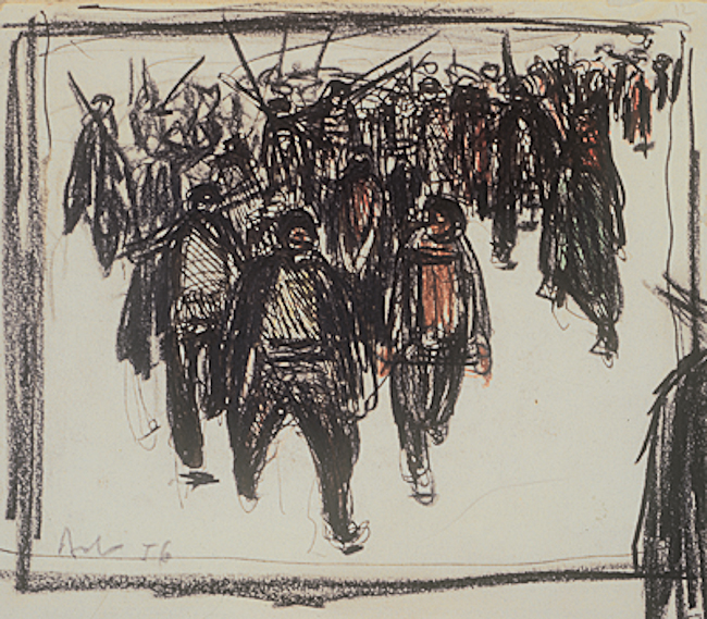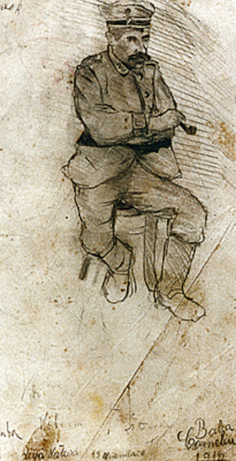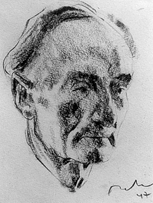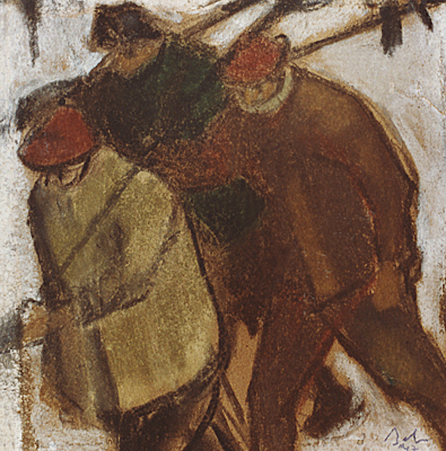 Cărbune și pastel, 33 × 27 cm, semnat, datat dr. jos cu brun