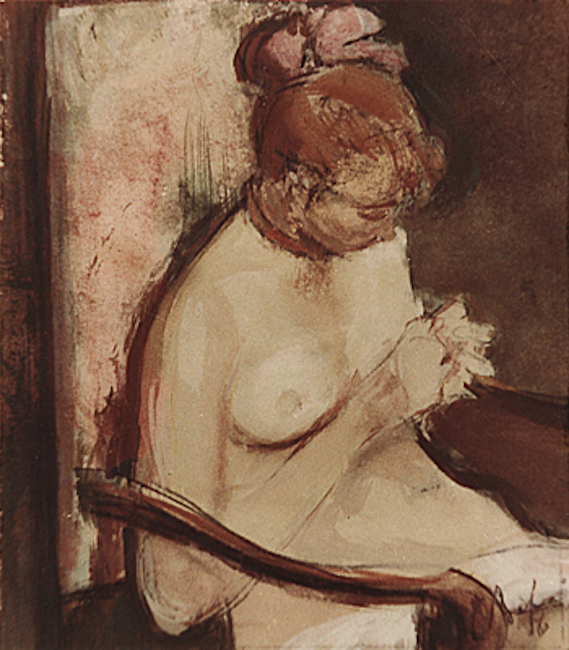Tehnică mixtă, 34 × 28,2 cm, semnat, datat dr. sus cu brun