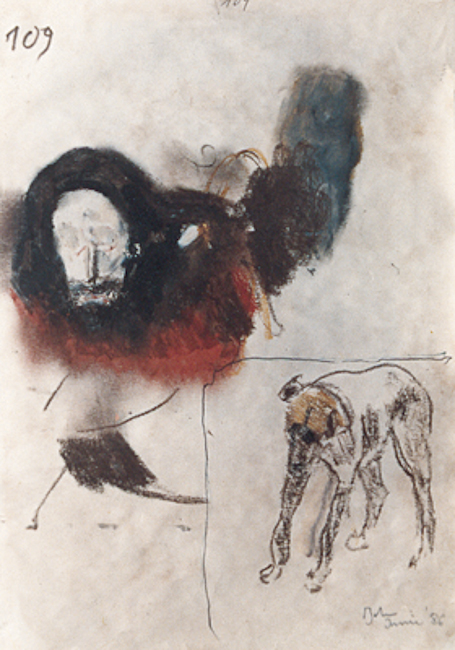 Tehnică mixtă, 21 × 15 cm, semnat, datat dr. sus cu negru