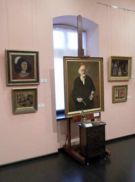 Am adus în expoziție câteva lucruri inedite din atelierul său. A primit la o vreme un cadou original: un manechin din lemn cu articulații. Amuzat, a început să îl acopere cu bucăți de materiale, la început hârtie, apoi pânză pe care o și colora cu uleiuri. În final, joaca a ajuns atât de preocupantă că a cerut să fie confecționate chiar haine, ca cele pentru Arlechin, Cavaler, Călugăr, Enescu, dar și capete de expresie. Se juca folosind lumina, impostarea în mișcare. Fac parte din lumea atelierului și am folosit această ocazie pentru a le vedea și dvs.