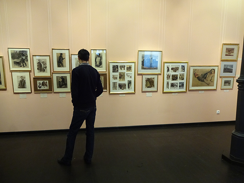 Convenția propusă este că suntem în atelierul pictorului. Natura moartă, natura vie – peisajele, natura supremă-omul – le găsim pe toate aici. Am montat în câteva panouri mici cu studii, schițe, eboșe, crochiuri doar pe câteva teme: scena de gen, natura statică, Toledo, portrete, regi. Aceste mici lucrări erau adunate de Corneliu Baba pentru a fi ilustrații în Jurnale, atunci când vor fi publicate. Unele dintre ele au devenit lucrări aflate azi în muzee sau colecții particulare.